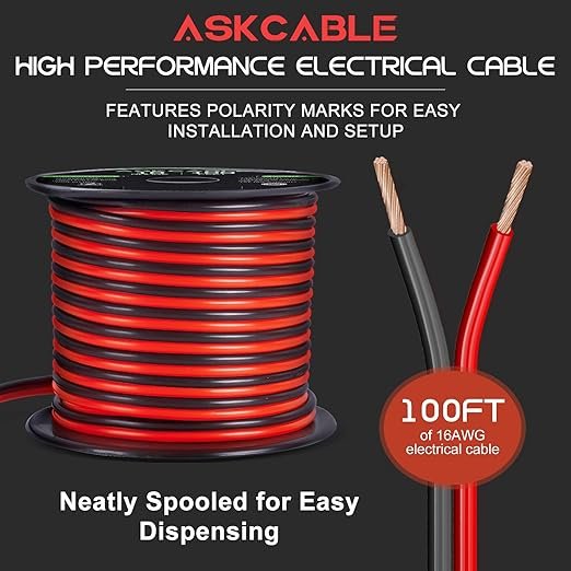 【High Quality】Askcable electrical wire is made of 16 AWG 100FT with red and black 2 conductors and high quality PVC jacket, good conductivity, high mechanical strengthfeatures, flame retardant, anti-aging, acid and alkali resistance and dampproof.