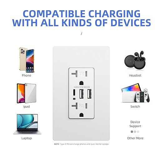 UNIVERSAL COMPATIBILITY: The built-in chip recognizes the individual device\’s charging protocols and requirements, and to optimize fast and efficient charging of your different electronic devices.Compatible with all electrical boxes, decorative devices and wall plates.