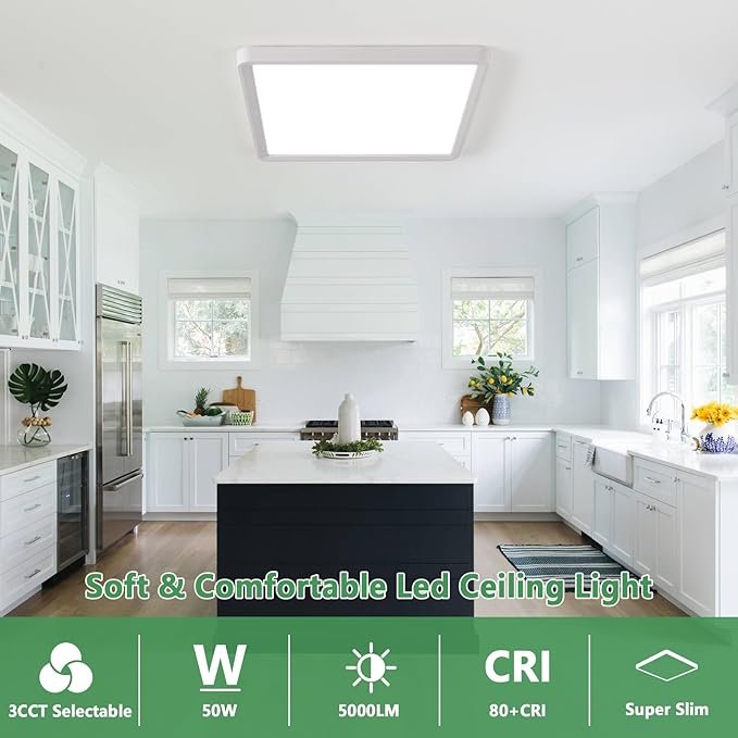 Sealed Slim LED Flat Panel Ceiling Lights: With a height of only 0.98 inches, it is ideal for low ceilings rooms like bedroom, apartment, attic, and it is well sealed to prevent dust and flying objects from entering, provie great performs in wet conditions.