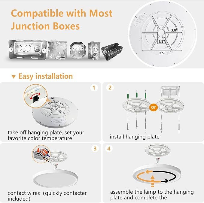 3 Color Temperatures Selectable: 3000K/4000K/6000K in One, this led flush mount ceiling light provide 3 color temperatures for you to choose, you are able to choose your favorite color temperature in different rooms.