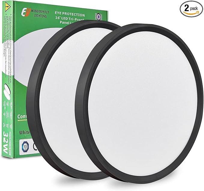 2PK 15.8 Inch Black LED Flush Mount Ceiling Light, 32W, 3480LM, 3000K/4000K/6000K CCT Selectable, Round Flat Panel Light Low Profile Ceiling Light Fitures for Hallway, Kitchen, Bedroom, Laundry Room