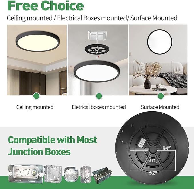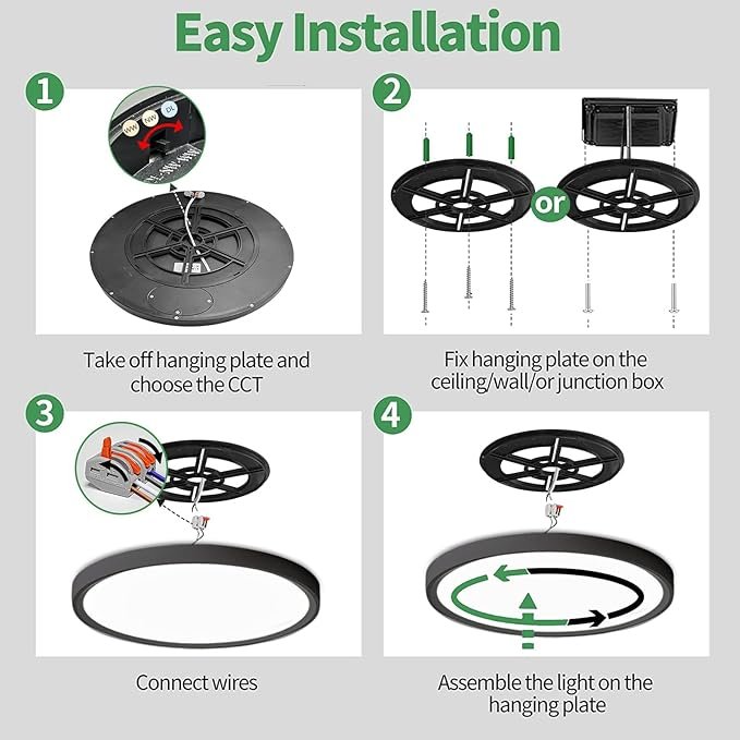 • CCT Selectable:This flush mount ceiling light fixture has 3 color temperatures optional:3000K/4000K/6000K, you can set your favorite color directly on the fixture before installation.