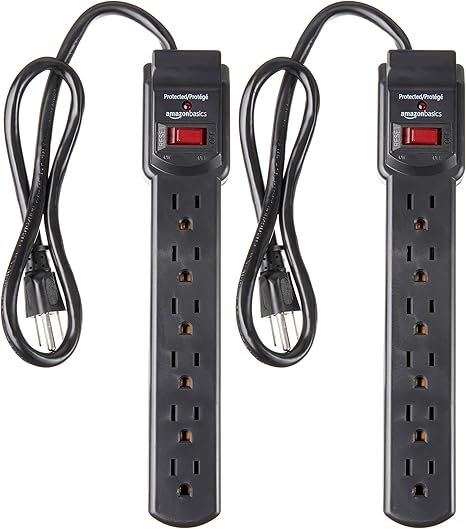 IN THE BOX: Surge protector power strip in Black (2-pack) for protecting small appliances, phones, lamps, and more from potentially damaging power surges