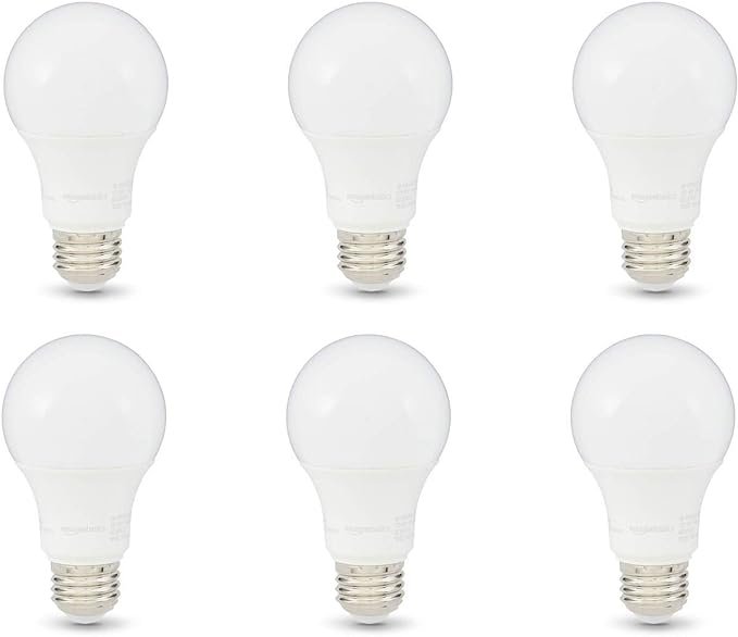 Amazon Basics A19 LED Light Bulb, 75 Watt Equivalent, Energy Efficient 12W, E26 Standard Base, Soft White 2700K, Dimmable, 10,000 Hour Lifetime , 6-Pack