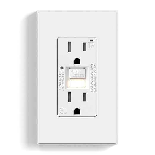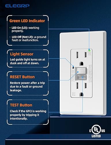 ✅【Make Nighttime Navigation Automatic】With built-in night light, this GFCI outlet automatically turns light on in dark and off in daylight, delivers advanced safety and protection. Ideal for kitchens, bathrooms, hallways, stairs, nurseries, and more. Saves space by eliminating the need to use an outlet for a plug-in night light.