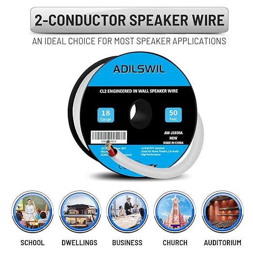 in Wall Speaker Wire Cable 18 Gauge 50FT 18/2 AWG CCA 2 Conductor Red and Black Wire with White Jacket Low Voltage Wires DC Electrical Wire ETL CL2 Rated for Hookup and Extension