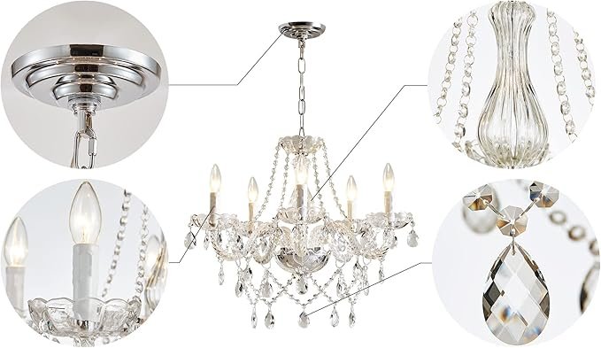 • 【Materials】Crafted from high-quality materials, this crystal chandelier is built to last. The glass arms are sturdy and durable, while the glass candlesticks provide a sleek and polished look. The crystal pendants are carefully crafted to ensure maximum clarity and brilliance.