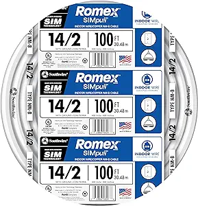Southwire Romex Brand Simpull Solid Indoor 14/2 W/G NMB Cable 100ft Coil – SW# 28827423