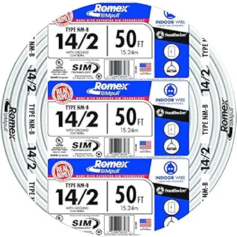 Southwire Romex Brand Simpull Solid Indoor 14/2 W/G NMB Cable 50ft coil – SW# 28827422