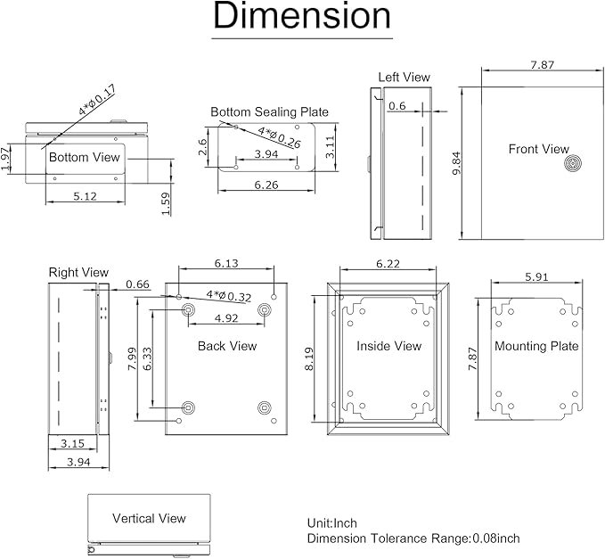 Convenient Installation: The electrical enclosure box is equipped with a removable galvanized mounting backplate to facilitate installing the electrical components. Complete accessories and four wall mounting holes on the back make it easy to fix the wall\’s electrical box.