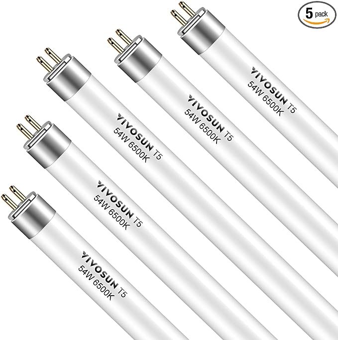 VIVOSUN T5 Grow Light Bulbs 4 Ft 46 Inches, 54W 6500K HO Fluorescent Tubes Light Bulbs, Cool White T5 Bulb for 46 Inches T5 Light Fixtures, T5 Grow Lights for Indoor Plants, 4 Ft 54W Pack of 5