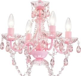 LaLuLa Mini Chandelier with Acrylic Crystals Pink Chandelier 4 Light Modern Chandeliers for Bedroom and Girls Room