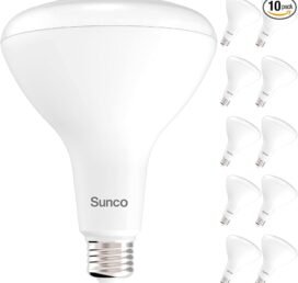 Sunco Lighting – 10 Pack BR40 Light Bulbs, LED Indoor Flood Light, Dimmable, CRI94 3000K Warm White, 100W Equivalent 17W, 1400 Lumens, E26 Base, Home Recessed Can Lights, High Lumens – UL