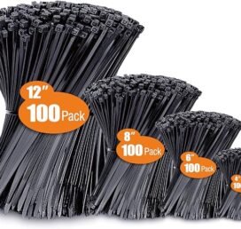 Zip Ties Assorted Sizes(4”+6”+8”+12”), 400 Pack, Black Cable Ties, UV Resistant Wire Ties by ANOSON